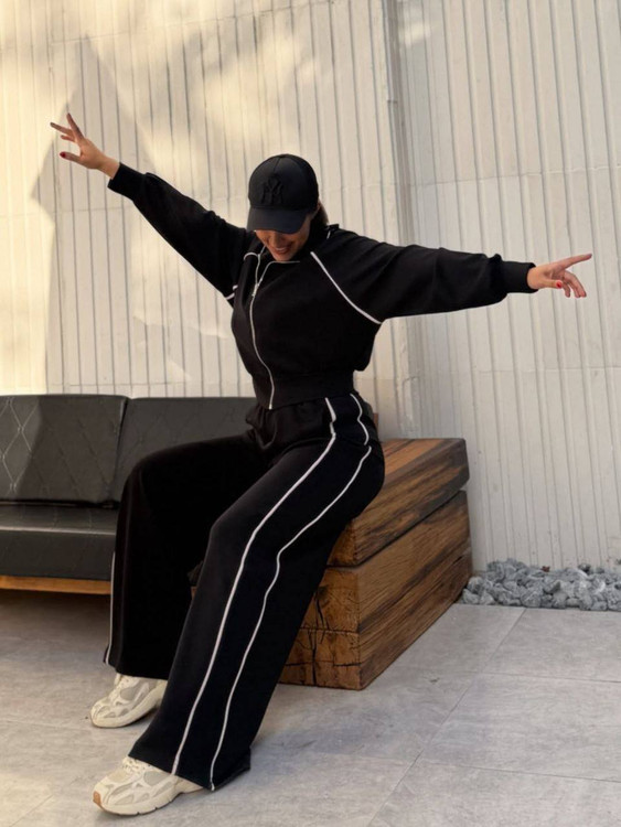 ست بامبر و شلوار مشکی مغزیدوزی یکی از جذابترین و ترندترین ستهای اسپرت امسال است که با طراحی مینیمال و تنخور فوقالعاده، استایلی شیک و مدرن را برای شما به ارمغان میآورد. این ست از پارچه گلکسی پنبه باکیفیت تولید شده که علاوه بر سبک بودن، تنفسپذیری عالی داشته و برای استفاده روزمره، باشگاه، پیادهروی و استایل خیابانی ایدهآل است.