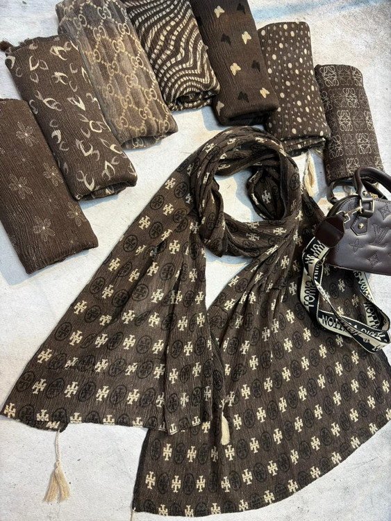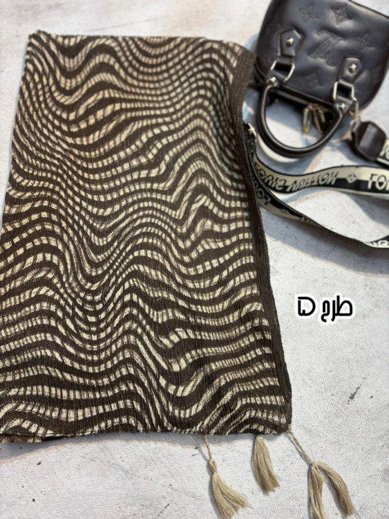 جنس: سبک، لطیف و خوشحالت رنگ: قهوهای گرم نوع پارچه: لمهدار با درخشش ملایم طراحی: طرحدار (زیبا و جذاب) مناسب برای: استایل روزمره، مهمانی، دورهمی و مجلسی ایستایی عالی روی سر و عدم لیزخوردن مناسب چهار فصل