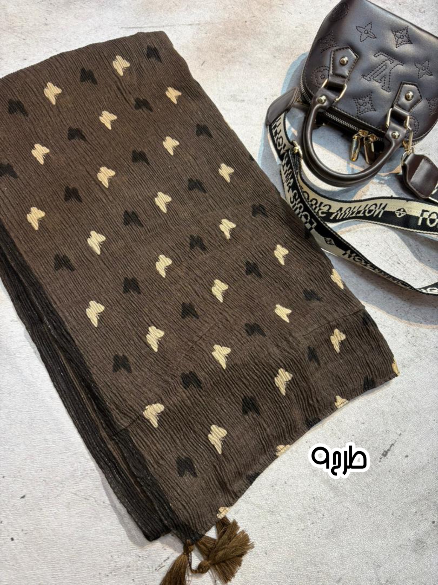 شال برشکا لمه طرحدار قهوهای | شال مجلسی شیک و جذاب برای استایل زنانه