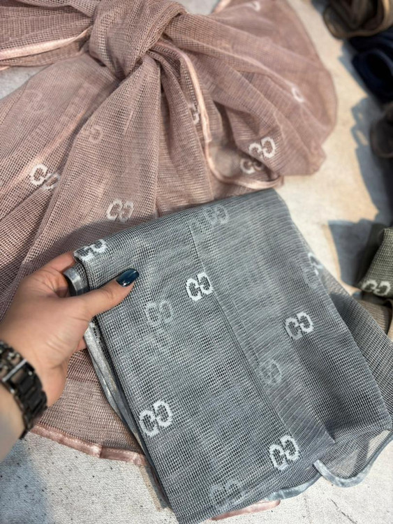 شال حریر تور وارداتی مارک گوچی با طراحی گلدوزی شده از کالکشن عیدانه ۱۴۰۵، انتخابی بینظیر برای فصل بهار و عید نوروز است. این شال با بافتی سبک و لطیف، راحتی بینظیری را برای شما به ارمغان میآورد. طراحی گلدوزی شدهی آن، جلوهای شیک و خاص به هر استایلی میبخشد و بهخوبی با سایر لباسها هماهنگ میشود.