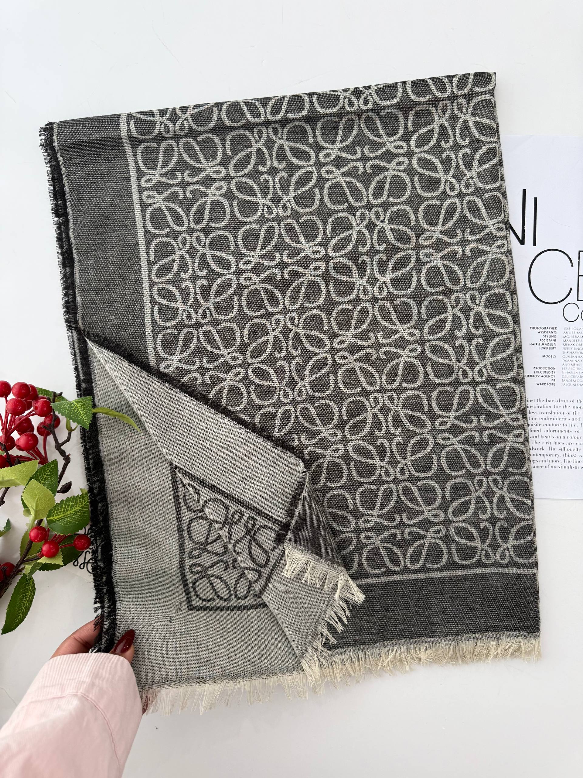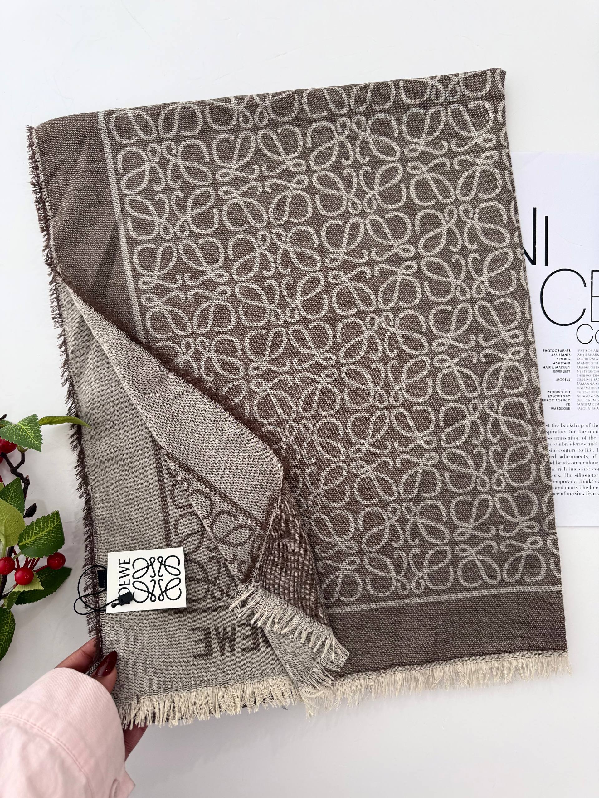 شال نخ کشمیر وارداتی اورجینال چهارطرف ریش مارک LOEWE