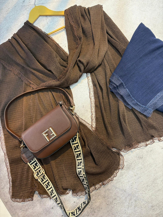 شال برشکا وارداتی دور گیپور | شال مجلسی شیک در دو رنگ سرمهای و قهوهای