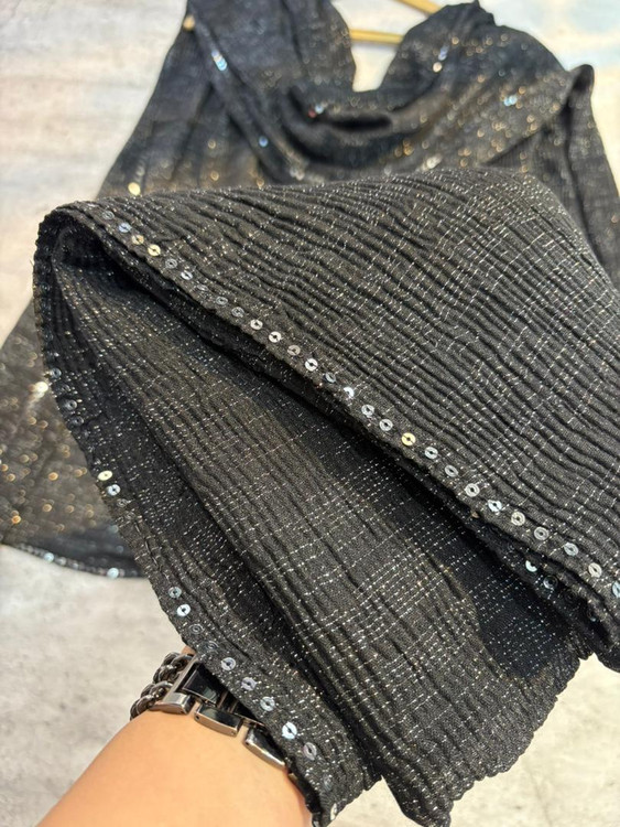 شال مشکی وارداتی دور پولک شاین دار